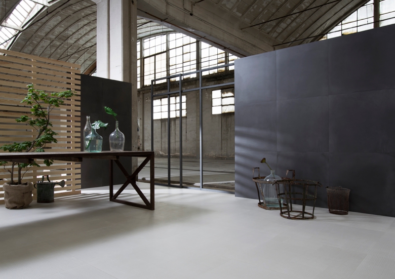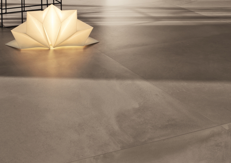 L’intento di Factory è quello di proporre una resina, in gres porcellanato a tutto spessore, nel quale la stonalizzazione della superficie risulti molto lieve sul pezzo singolo e che sia in grado di assumere una valenza più importante a pavimento finito; tutto questo per rimarcare il concetto per il quale la piastrella è un semilavorato che diventa prodotto finito solo nel completamento della posa.