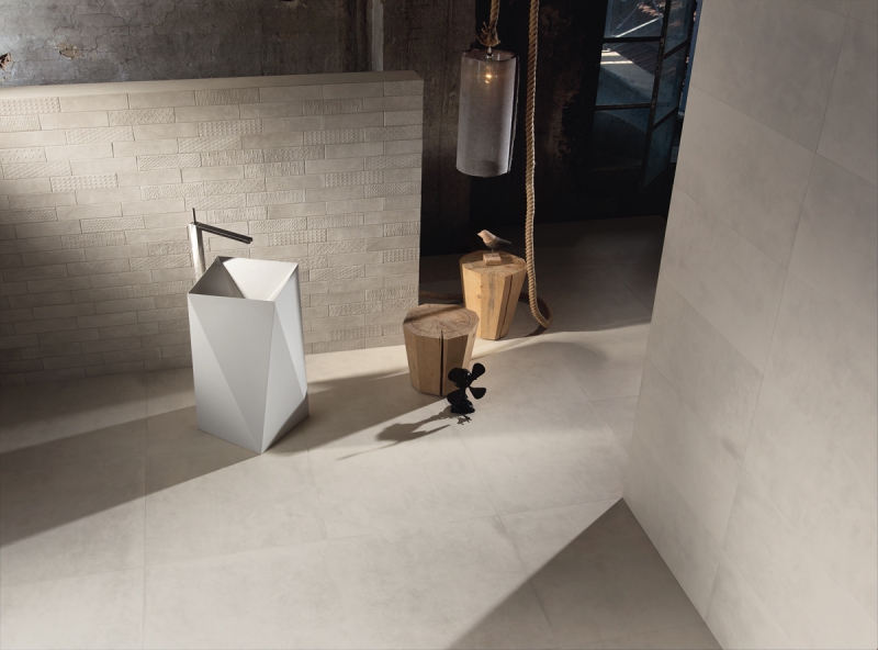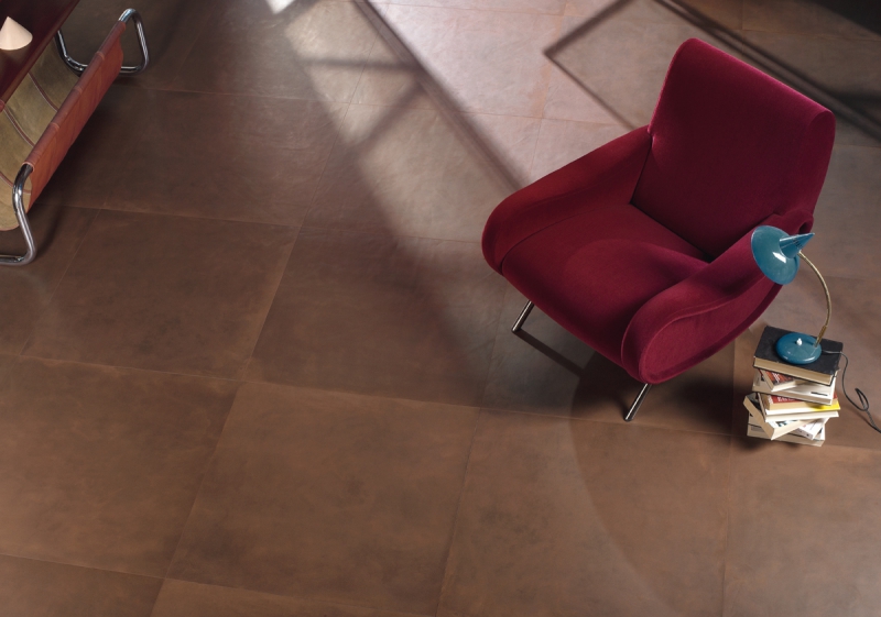 L’obiettivo? Realizzare una piastrella di ‘metallo’ in gres porcellanato. La struttura lievemente martellata, come per pareggiare una sottile lastra di metallo, e i riflessi più lucidi sulla superficie, sono le caratteristiche di questo prodotto.