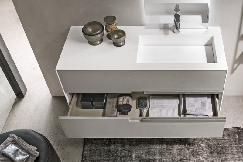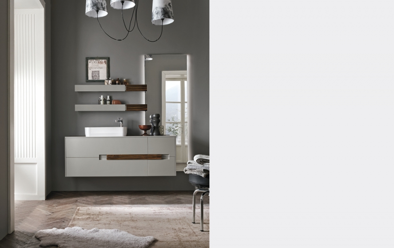 Con Atelié, l’arredo bagno si veste di molteplici stili. Da semplice accessorio, la maniglia diventa parte integrante del look, da abbinare in modo originale per dare personalità all’ambiente. Centrale o decentrata, la maniglia valorizza la composizione e, come un decoro, impreziosisce l’arredo. In essenza per dare un tocco di calore o in laccato per un gusto moderno, ma anche in marmo, per ambienti raffinati e glamour o in finiture materiche, come ferro, rame ed ecomalta per atmosfere più contemporanee. Attraverso gli accostamenti di materiali, moduli e complementi, Atelié interpreta stili diversi, dal moderno total white al luxury, dal colore fashion al neoborghese.