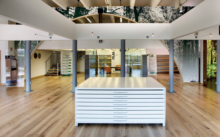 Assi del Cansiglio è un listone prefinito di grandi dimensioni a tre strati, per pavimenti, controsoffitti e rivestimenti, lavorato in maniera artigianale e trattato con vernici e colle ecologiche all'acqua. Lo strato a vista è in legno nobile di faggio italiano della Foresta del Cansiglio, certificata Pefc. Si tratta di un progetto totalmente italiano, dalla materia prima alla produzione. Un prodotto a chilometro zero, perché la Foresta del Cansiglio è situata a soli venticinque chilometri dalla sede produttiva di Itlas, che ha fortemente voluto questo progetto, sfida imprenditoriale molto ambiziosa che nasce da una sinergia fra un'azienda privata e l'ente pubblico che sovrintende le foreste del Veneto.
